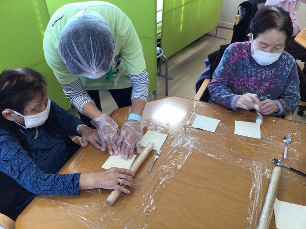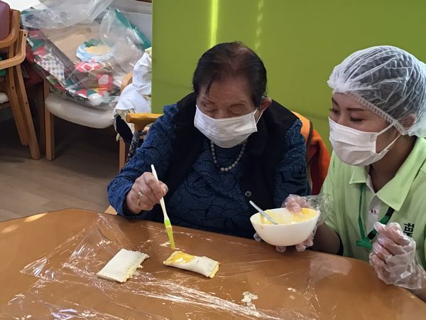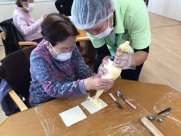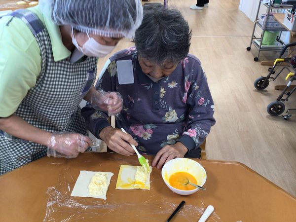 ご利用者様と一緒に手作りおやつのカスタードパイ作りに挑戦しました。