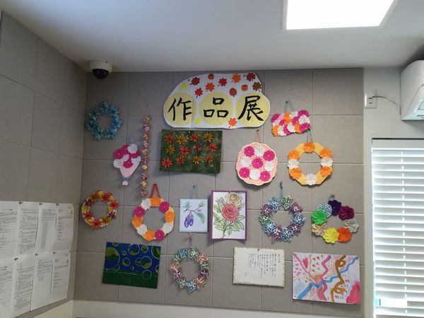 また、作品展では塗り絵や工作など、心を込めて作った作品を展示。